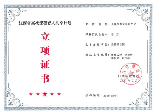 《景德镇陶瓷礼俗文化》课程获江西省精品在线课程、共享课程