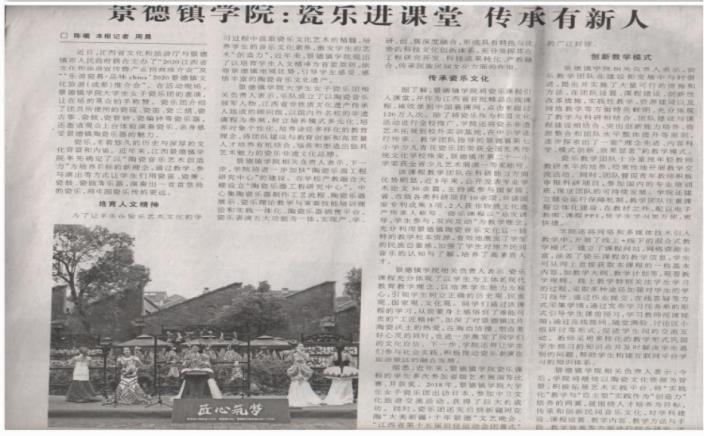 实践成果曾被中国旅游报刊登题为《英国beat365官方网站:瓷乐进课堂 传承有新人》专题报道,被“中共中央宣传部 学习强国”平台予以转载,并被中央电视台、新华网、共产党员网、新华社官方账号、中国报道网、中文导报网、江西日报、江西教育网、浙江卫视等10余家官方媒体平台进行相关报道。