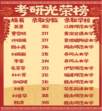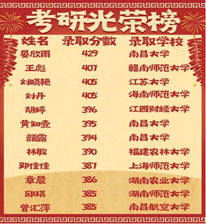 升学方面也取得良好成效。近三年硕士研究生录取率约30%,20余人考入北京交通大学、湖南师范大学、南昌大学、华南师范大学等211高校,为学生进一步深造奠定坚实基础。