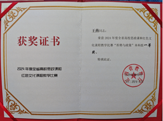 学院教师在教学竞赛中表现优异。一名教师荣获第六届江西省高校青年教师教学竞赛决赛一等奖第一名,并代表江西省获第七届全国高校青年教师教学竞赛二等奖,实现学校建院升本以来国家级教学竞赛奖项零的突破。2024年,一名教师在江西省高校思政课和红色文化课程教学比赛中获“形势与政策”本科组一等奖。此外,学院教师紧扣“高校思政课问题式专题化团队教学改革”主题,打造《做新时代的忠诚爱国者》《领悟人生真谛,把握人生方向》等有思想、有温度、有情怀的“最美思政课”,两门课程均获评江西省高校“最美思政课”,展现了学院教师高超的教学水平。