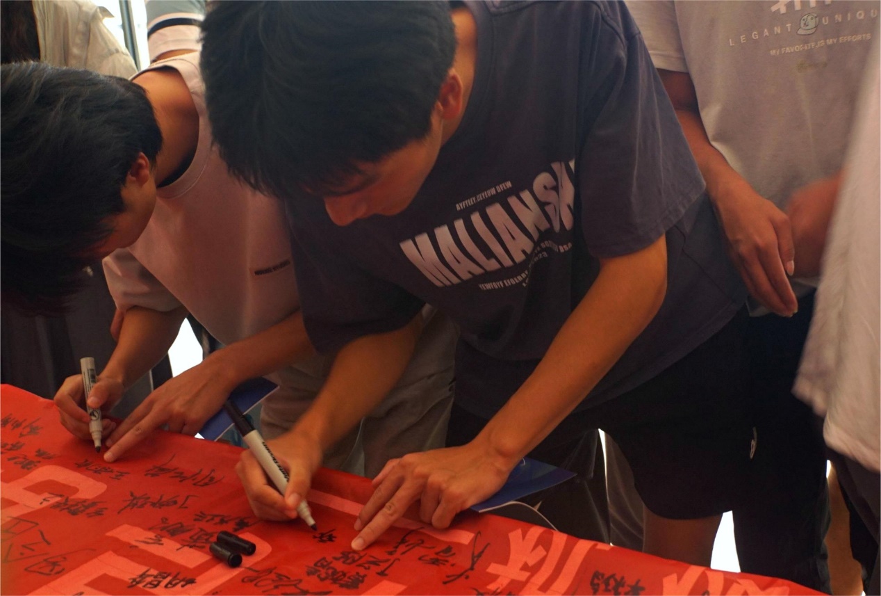 同学们在横幅上签名 校报记者团何远梅摄