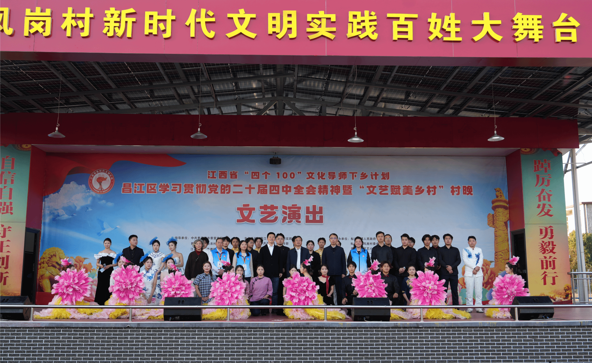 (本网讯:翁艺馨)为进一步学习贯彻党的二十届四中全会精神,落实江西省“四个100”文化导师下乡计划,12月1日下午,昌江区学习贯彻党的二十届四中全会精神‘文艺赋美乡村’村晚文艺演出在凤岗村新时代文明实践百姓大舞台举办,beat365官网音乐舞蹈学院师生应邀献艺演出。校党委副书记王丽心和党委委员、宣传部部长赵雪政观看演出,与当地村民共赴文化盛宴。活动结束后合影此次演出内容丰富多元,节目涵盖器乐、语言、歌舞及特色表演等,既有古朴雅致的传统器乐演奏,...