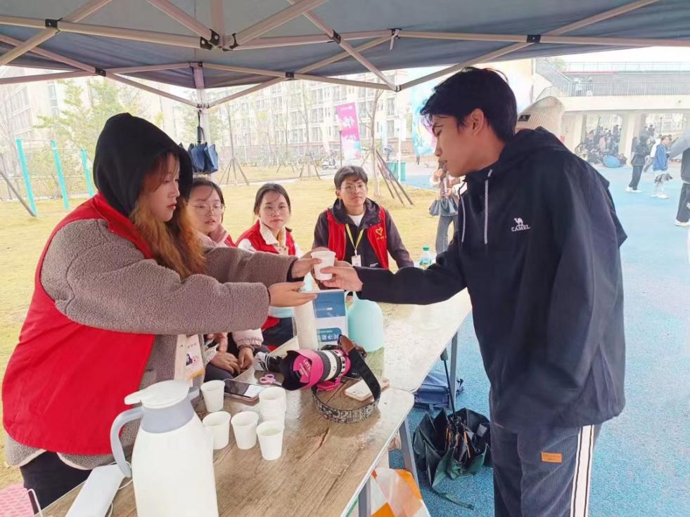 运动会现场,志愿者们送来了一杯杯热茶。无微不至的关怀驱散了雨丝带来的寒意,也温暖了每个人的心,谱写了一曲幕后英雄们热情洋溢、无私奉献的完美篇章。