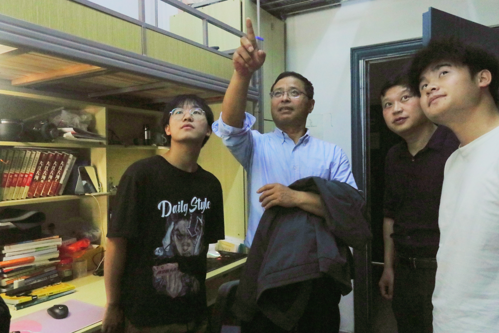 叶观荣询问学生宿舍设备情况 校报记者徐家鑫摄
