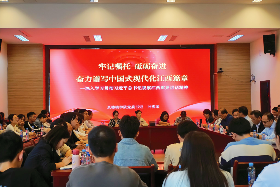 当天下午,叶观荣在第一报告厅以“牢记嘱托砥砺奋进奋力谱写中国式现代化江西篇章——深入学习贯彻习近平总书记考察江西重要讲话精神”为题,从“江西概况及其历史地位”“习近平总书记三次考察江西”“学习领会习近平总书记三次考察江西重要讲话精神”“奋力谱写中国式现代化江西篇章”和“为奋力谱写中国式现代化江西篇章贡献更多景德镇力量”五个方面为同学们讲授了一堂生动而有意义的思政课。