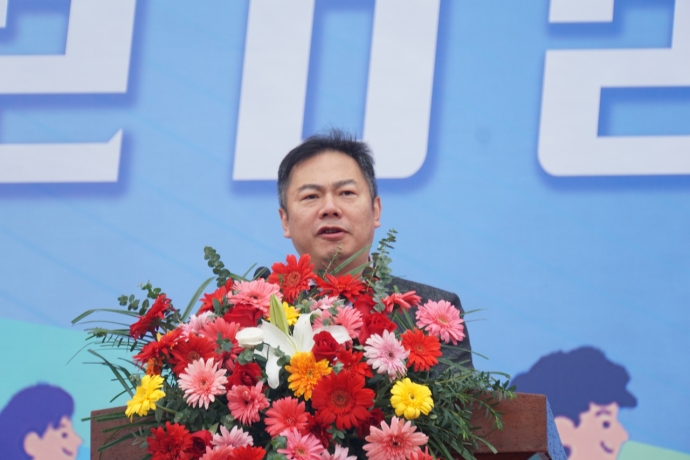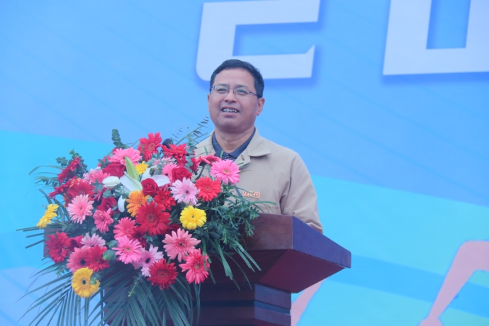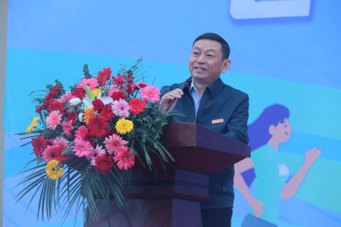 (本网讯:文|校报记者曾梦婷、欧阳晰/图|校报记者刘雨欣、江珍燕)华夏神州迎盛世,景院师生谱华章。为深入贯彻落实习近平总书记关于体育强国建设的重要论述,大力弘扬中华体育精神,全面落实立德树人根本任务,培养德智体美劳全面发展的社会主义建设者和接班人。11月8日上午,beat365官网第十一届田径运动会在校田径场开幕。校党委书记叶观荣出席并宣布运动会开幕。校党委副书记、校长陈运平为运动会开幕式致辞,校党委副书记王丽心,校党委委员、副校长郑昕芾,副校长黄志坚,校党委委员、副校长周清平,校党委委员、组织部部长朱贺江,校党委委员、宣传部部长赵雪政出席开幕式。校党委委员、副校长方漫主持开幕式。