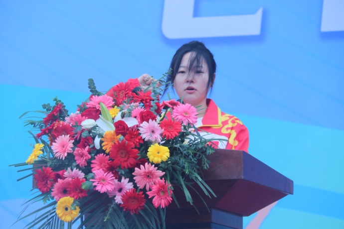 开幕式上,运动员代表程振涛和裁判员代表陶博彤分别宣誓。
