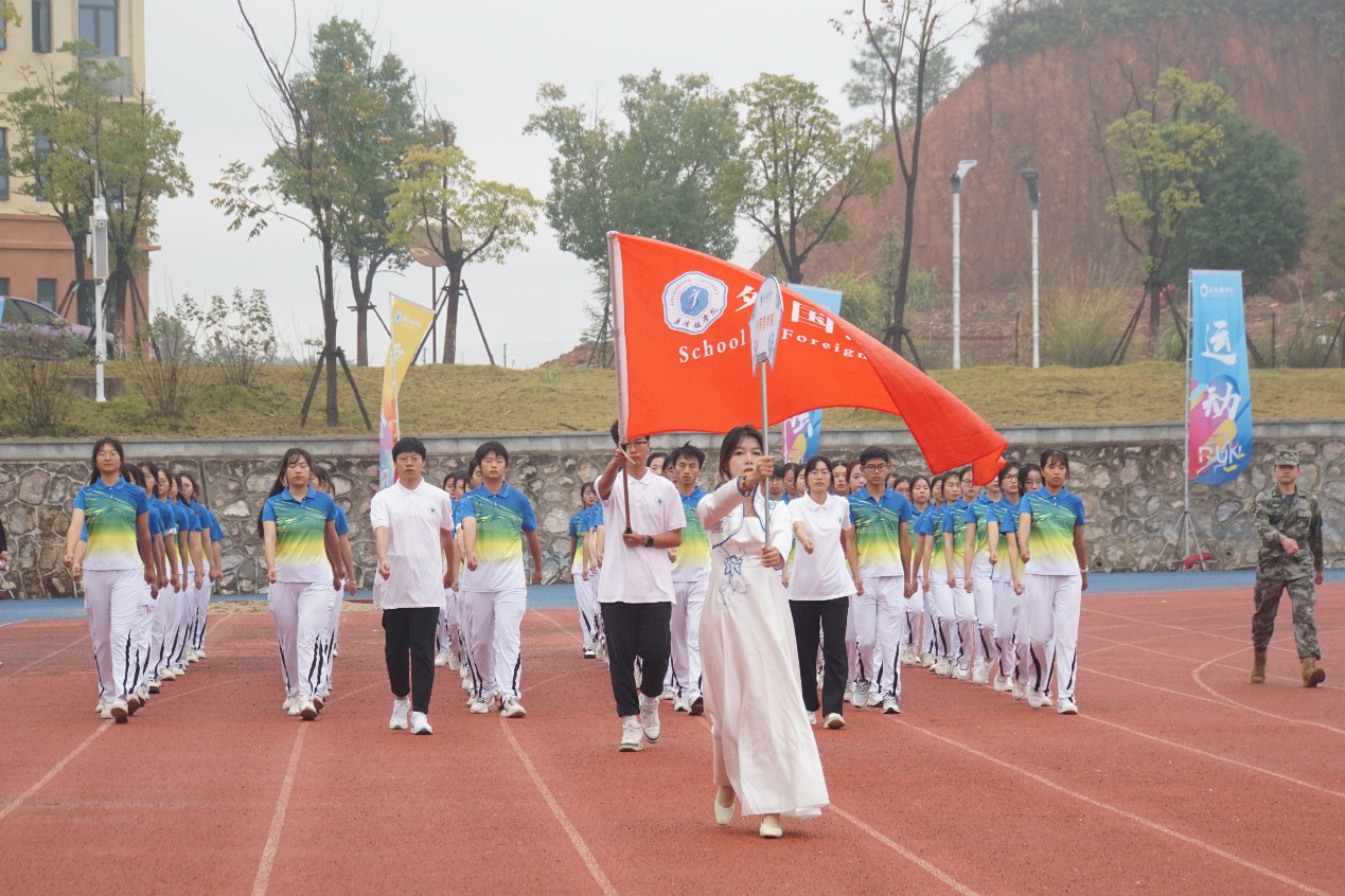 开幕式在庄严的升国旗仪式中拉开序幕,伴随着昂扬的《运动员进行曲》,整齐划一,雄姿昂扬,国旗方阵率先入场。紧接着,会徽队、校旗队、彩旗队、裁判员队、教职工代表队、军训教导大队和各二级学院代表队迈着铿锵有力的步伐,喊着嘹亮的口号,依次经过主席台接受检阅。坚毅的目光,挺拔的身姿,嘹亮的口号,矫健的步伐,无不展现了景院师生的青春活力与蓬勃朝气,形成了今日最靓丽的风景线!