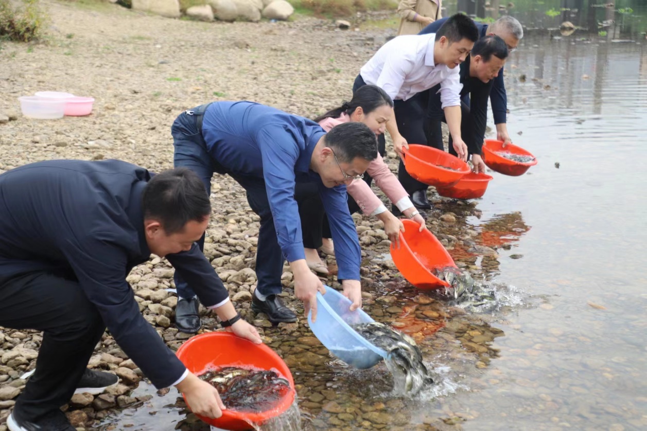 活动现场,相关专业人员介绍活动流程并按照操作规程对放流鱼苗从检测检疫、放流数量、放流规定等方面进行全程监督,生物与环境工程学院志愿者按照活动要求将鱼苗搬运至指定处。出席活动的领导与志愿者们共同放流鱼种,鱼苗顺势缓缓流入河中,放流工作顺利完成。