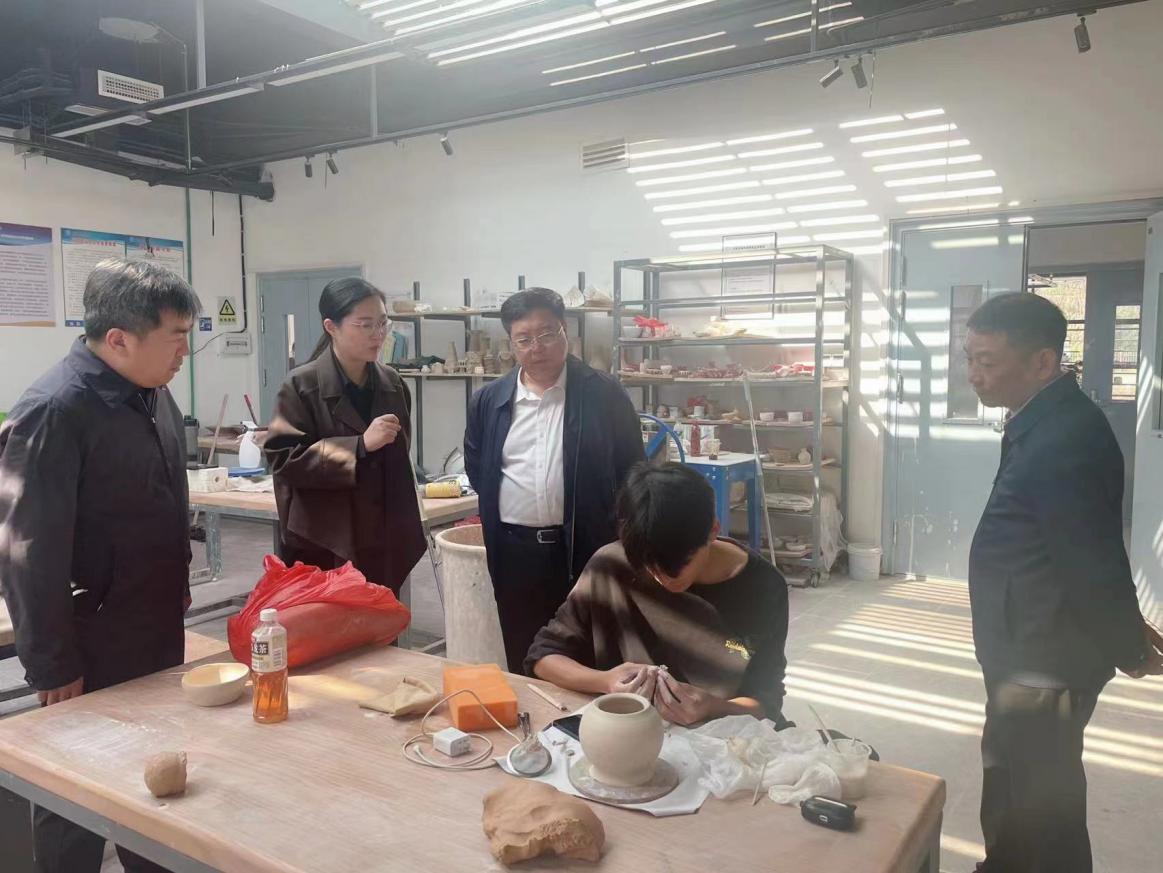 随后,两校相关部门负责人就专业建设、产教融合等内容进行了探讨交流,座谈结束后,张炳辉一行参观了beat365官网美术馆,、艺术学院实训中心实操和教席大楼。