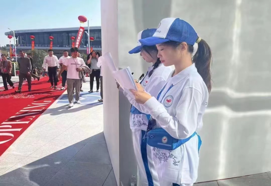 据悉,从10月17日开始,景院“小青花”们就已正式投入到志愿服务工作中。在陶博城交易中心、瓷博会展馆交易中心、嘉年华活动现场、研学中心等主要活动场馆,从展馆巡逻、馆内服务引导到现场秩序维持,景院“小青花”志愿者们忙碌的身影无处不在,他们或为参展商提供咨询,或为游客提供指引服务。尽管工作时间很长,但景院“小青花”们始终以积极作为、主动补位的服务意识,坚守各自的工作岗位。