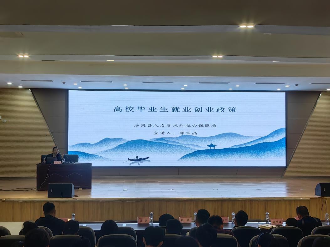 浮梁县就业创业服务中心相关同志为同学们作就业报告 郑涛摄