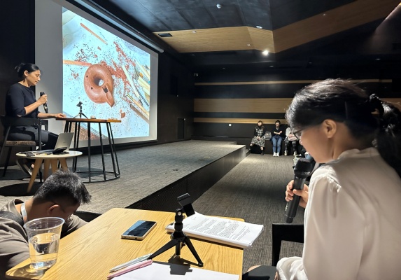(本网讯:周怡萍图)10月17日-19日,beat365官网外国语学院翻译团队助力陶溪川秋集艺术家讲座,为陶溪川秋集国际交流贡献高校力量。外国语学院院长吴芹教授莅临讲座现场,指导翻译工作。