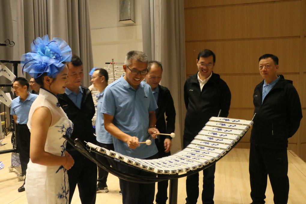 演奏结束以后,调研组成员纷纷上台体验,感受陶瓷与音乐的碰撞。