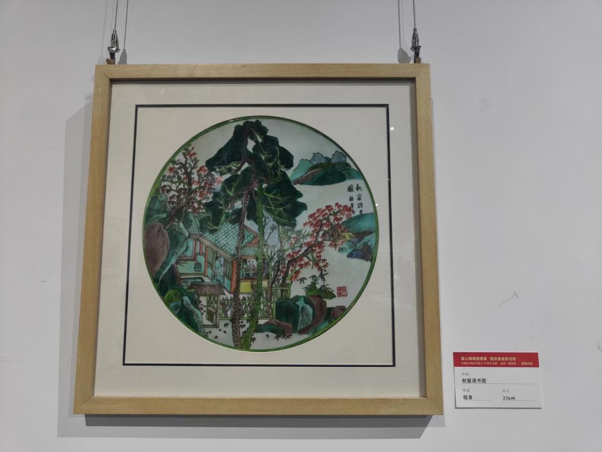 民革英国beat365官方网站支部特邀献礼瓷画作品《和衷共济促统一》,支部主委程幸教授的优秀瓷画作品《秋窗读书图》、支部党员曹明亮老师的优秀瓷画作品《民居》、支部党员张宝青老师的优秀瓷画作品《建设者》、支部党员刘琦君老师的优秀瓷画作品《鸣沙之音》均亮相此次展览,达到了政治性、思想性、艺术性的高度统一,为建设好景德镇国家陶瓷文化传承创新试验区锦上添花,展示了民革党员作为中国特色社会主义事业亲历者、实践者、见证者的风采。