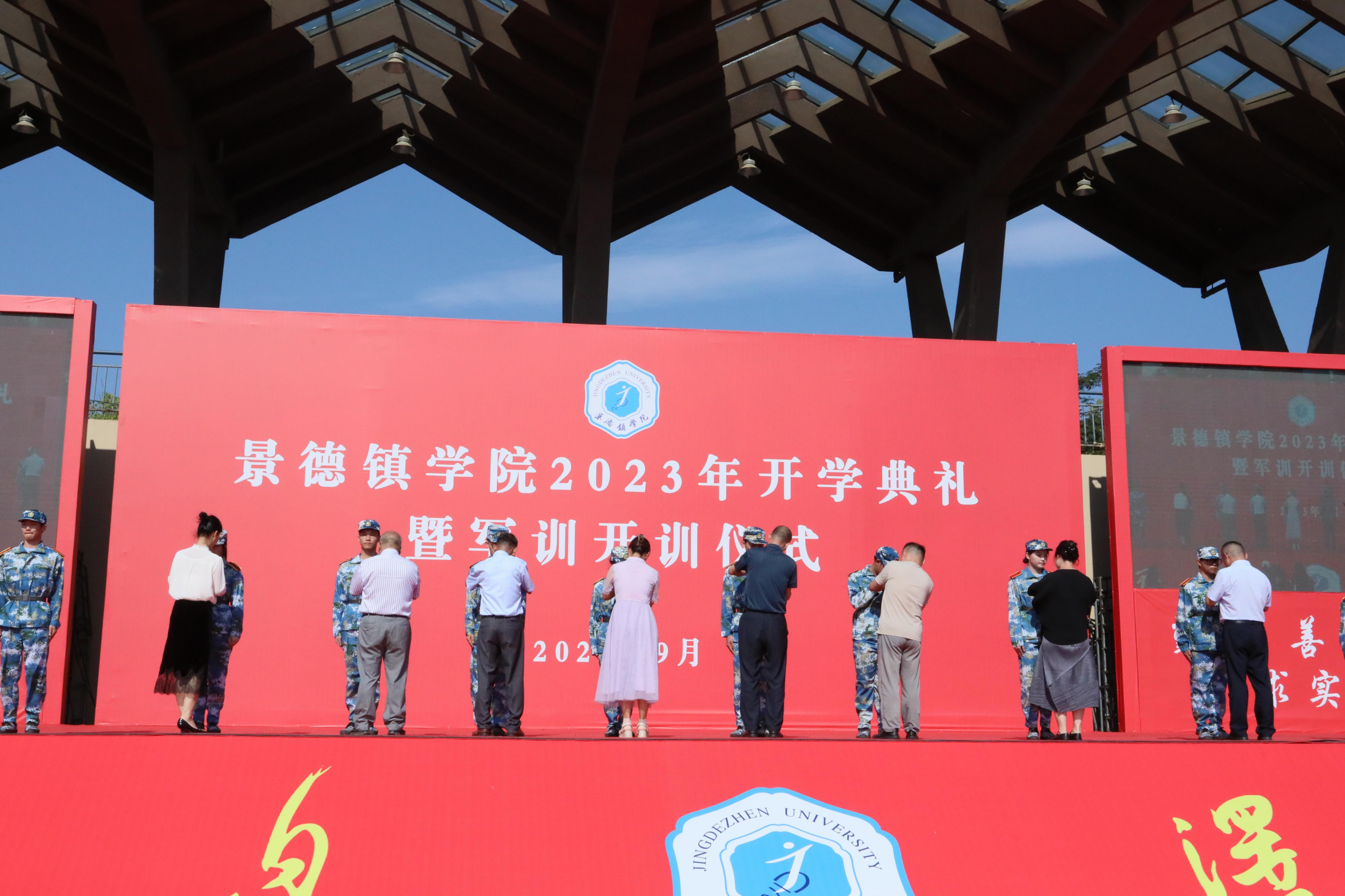 各二级学院院长为2023级新生代表佩戴校徽,红底金字的“英国beat365官方网站”别在青年们的胸前熠熠生辉,激励着莘莘学子传承“自强不息泽土惠民”的校训精神,融入景院大家庭。