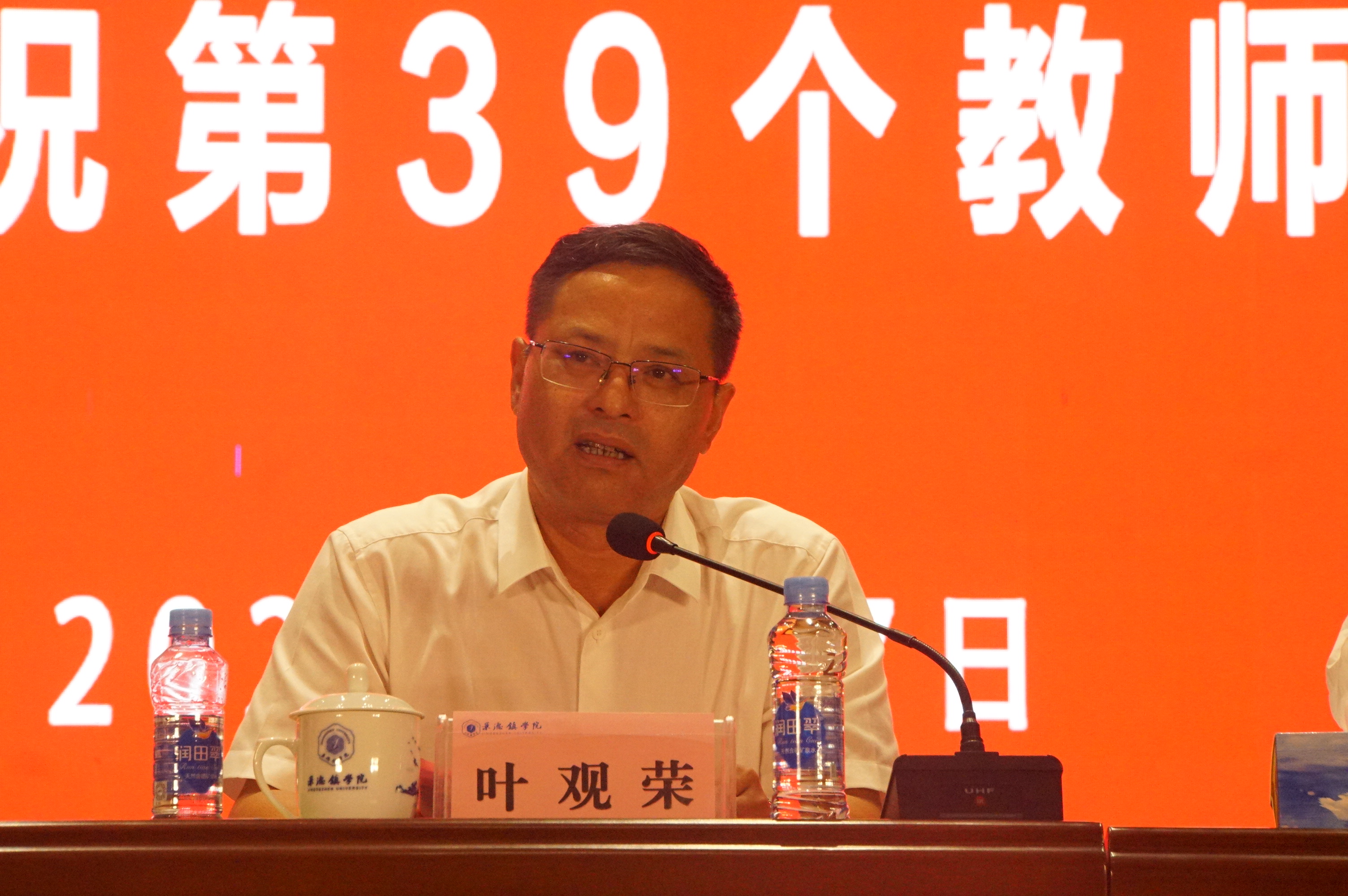 (本网讯:周灿、江珍燕)金秋九月,累累的果实在枝头飘香,为深入学习贯彻习近平总书记关于教育的重要论述,以最高礼遇、最诚敬意、最深谢意,表彰先进典型,传递榜样力量,弘扬良好风尚。9月7日下午,beat365官网庆祝第39个教师节主题活动暨表彰大会在大学生活动中心举办。校党委书记叶观荣出席会议并讲话,党委副书记王丽心,副校长黄志坚,党委委员、组织部部长朱贺江,党委委员、宣传部部长赵雪政出席大会,校党委委员、副校长郑昕芾主持大会。