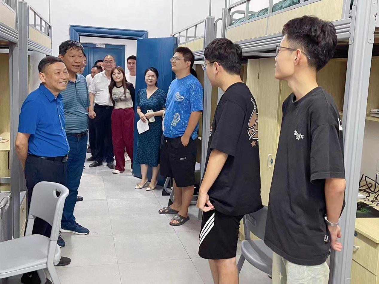 在新生宿舍,校领导亲切询问同学们在住宿、饮食、环境适应等方面的情况,对同学们提出的问题给予解答,鼓励大家要增强体魄,培养自我管理意识,积极主动适应新学校、新环境、新生活,做好新一阶段的人生规划,丰富充实即将开始的四年大学生活,开启新征程,扬帆再出发。