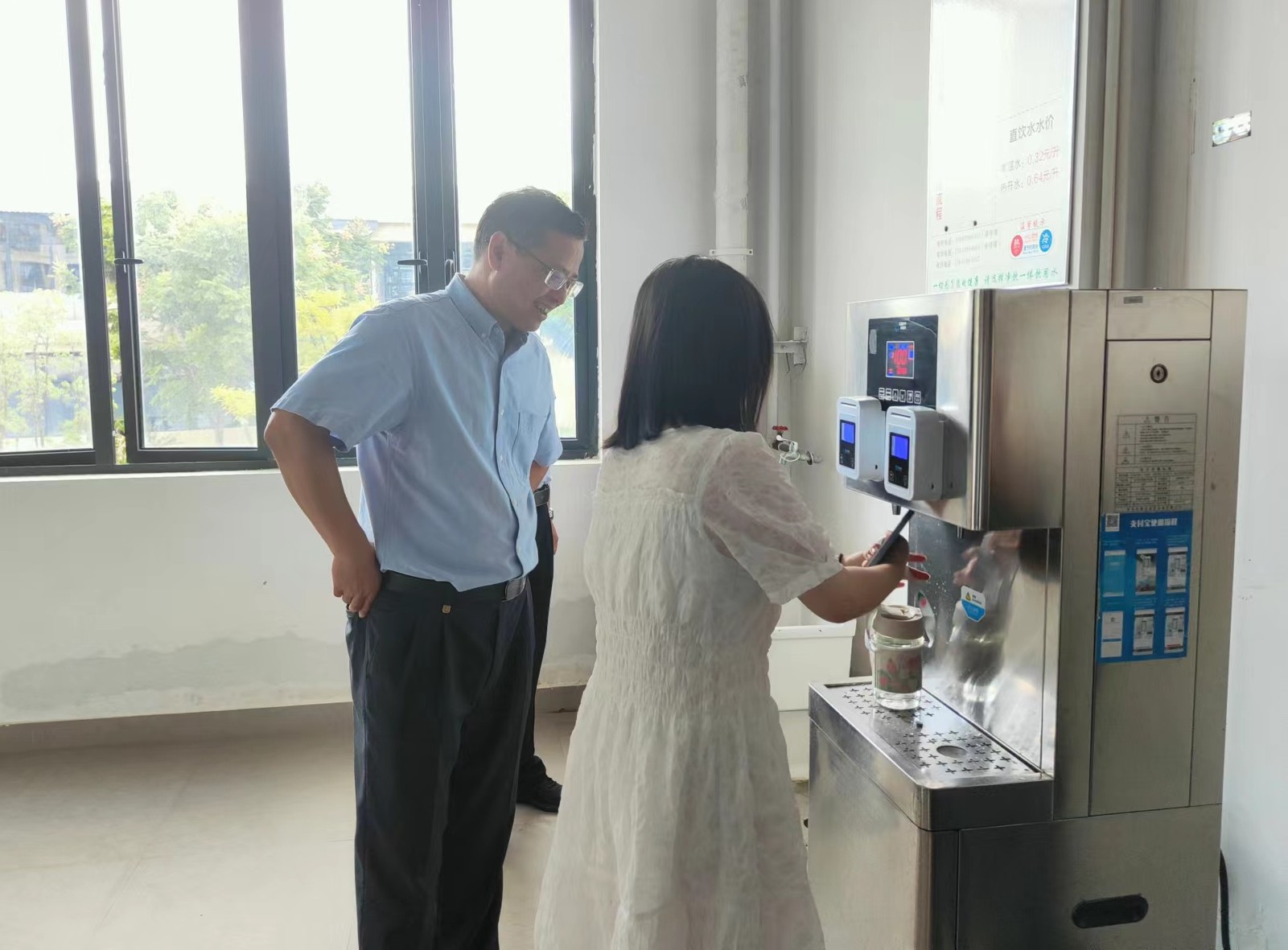校党委书记叶观荣查看开水房 胡铂摄