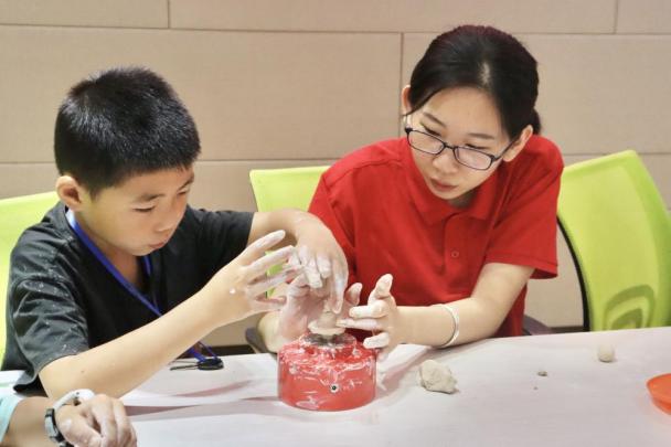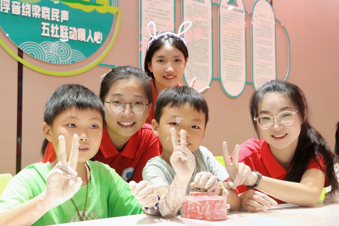 队员在带孩子们进行陶艺体验创作 胡文婷摄