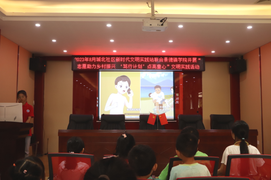 安全无小事,责任大于天。为切实做好暑期青少年儿童防溺水安全教育工作,有效预防儿童青少年溺水悲剧发生,保障社区孩童们的生命安全,服务队队员精心制作PPT、宣传海报以及宣传手册,对社区青少年儿童开展“防溺水”主题教育,聚焦防溺水“七不两会”主线知识,以视频观看、信件宣读、探讨交流等多种方式给社区儿童科普讲解防溺水安全教育知识。