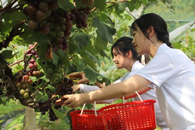 在王港乡葡萄栽培基地,整齐的花卉苗木争相斗艳。一场夏雨过后,一排排成熟的葡萄格外诱人……一幅产业兴旺、生态宜居的乡村振兴画卷正徐徐展开。正值葡萄集中采摘销售期,队员们顶着烈日酷暑,深入葡萄园帮扶助农,助力果农葡萄采摘,体验了最真实的农村生活。采摘完成后,队员们认真学习所采摘葡萄的加工、包装流程,并细心按照果农师傅教授的方法完成各道工序。通过助农帮扶,队员们深入田间地头,把双脚扎根祖国大地,在挥洒汗水中切实感受到了劳动的艰辛与收获的喜悦,也更加珍惜来之不易的幸福生活。