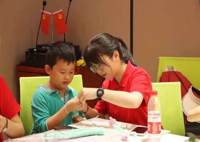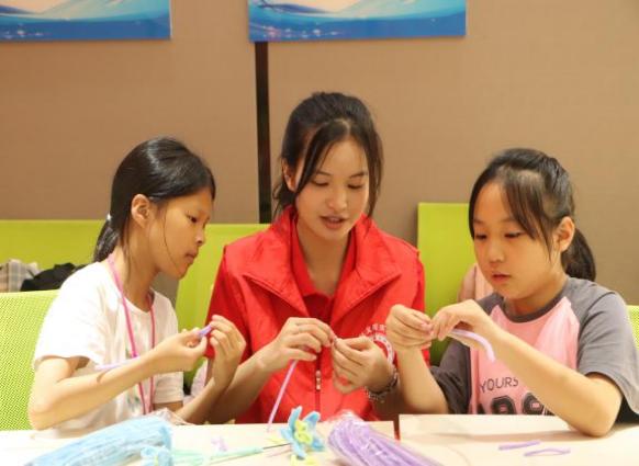 服务队队员指导孩子们制作扭扭棒 戴方晴摄