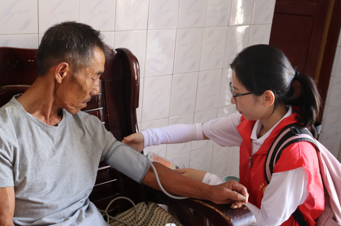 服务队上村入户为村民量血压 胡文婷摄
