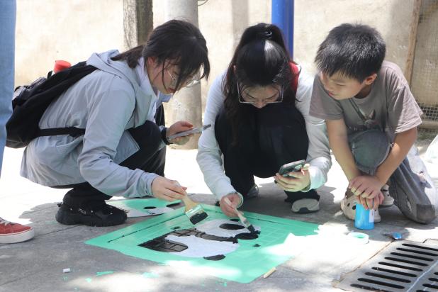 为扮靓美丽乡村,烈日炎炎下,志愿者们在王港乡坑口村开展了井盖绘画活动,他们将画笔、颜料等工具摆放整齐,并仔细研究每个井盖的外观状况。从设计到用粉笔勾勒图案、再到用丙烯颜料填充颜色等,每个环节都一丝不苟。有的井盖绘图以“可爱动物”为主题,有的以“学习党的二十大”为主题,还有的是倡导“文明风尚”主题井盖绘画……在大家的共同协作下,各种形状的井盖相继穿上了亮丽的新衣。