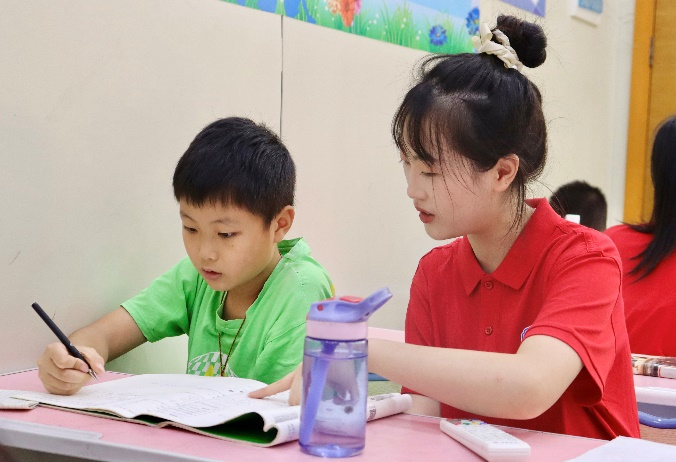 队员给留守孩子进行课业辅导 胡文婷摄