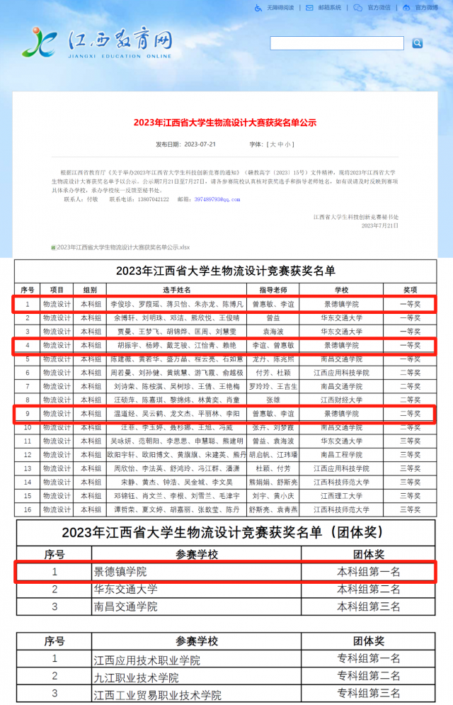 【喜报】beat365官网学子在2023年第十二届江西省大学生物流设计大赛中再创佳绩
