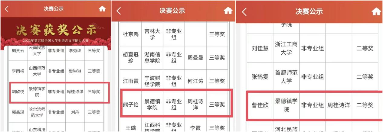 决赛获奖公示结果 曹佳欣供图