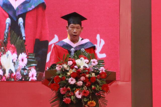陈运平代表学校向2851名即将告别母校的毕业生表示最热烈的祝贺,向辛勤培育毕业生的师长、父母和亲友致以最诚挚的感谢。“历历开元事,分明在眼前”陈运平感叹道:“四年前你们如百川归海,汇聚到景院这个大家庭中,今天你们将展翅高飞,奔赴未来。回看过去,在“抗疫”的路上,你们用行动诠释了责任,用奉献彰显了担当,你们没有停止追求一流、追求卓越的步伐,你们用青春行动深刻践行着“自强不息,泽土惠民”的校训精神,把青春力量尽情播撒在国家富强、民族复兴的征程上!”