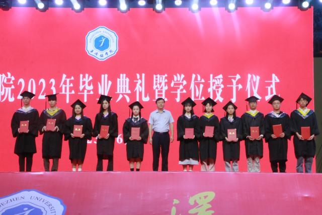 授予仪式上,叶观荣给优秀毕业生颁发荣誉证书,陈运平为获得学士学位的毕业生代表授予学位证书、行拨穗礼,王丽心向2023届校友联络员代表颁发聘书,黄志坚宣读《关于授予本科毕业生学士学位的决定》,周清平宣读《关于表彰2023届优秀毕业生的决定》。