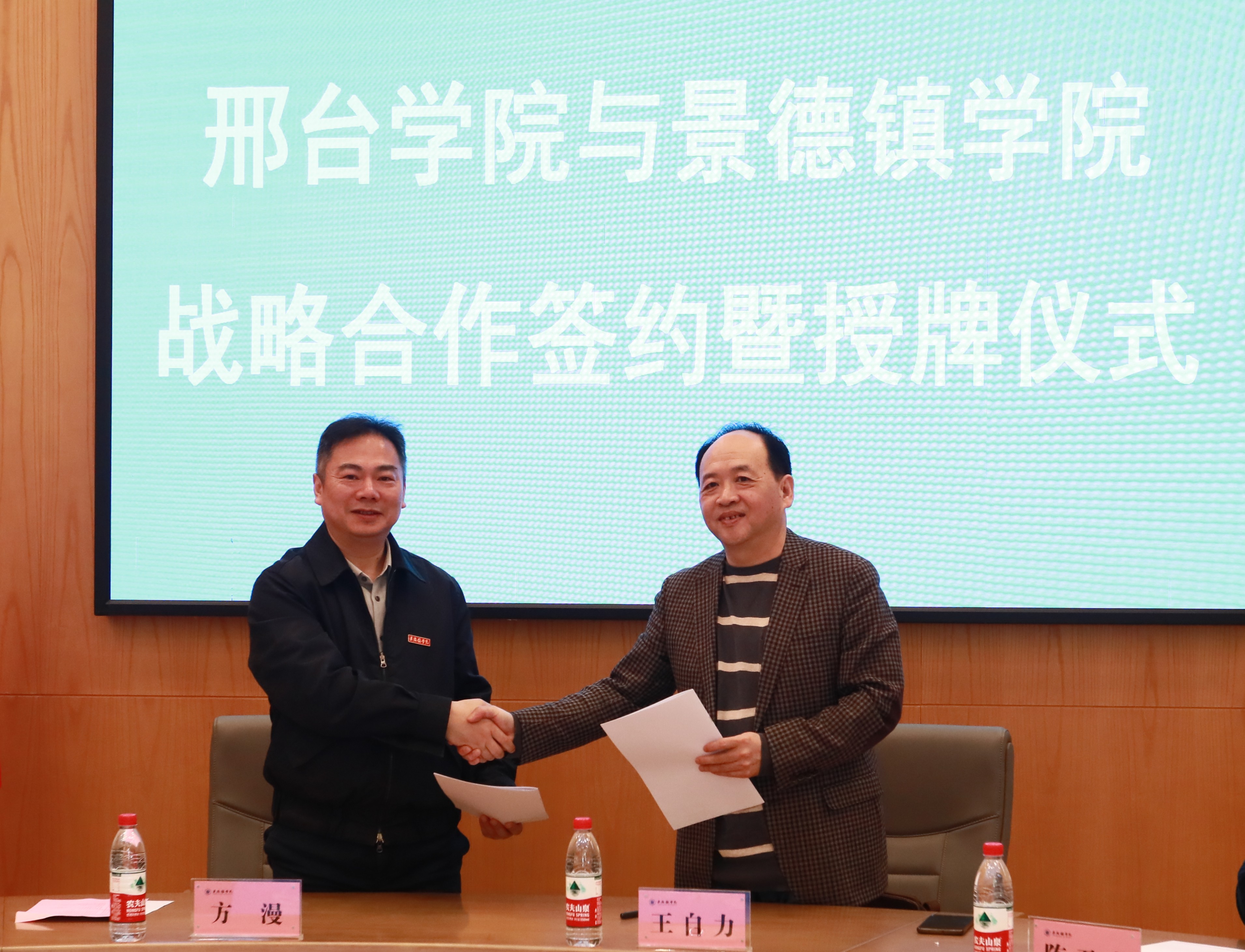签约仪式上,方漫与王自力签约双方的战略合作协议并授牌,随后,双方共同观看两校的宣传片,并就学院的合作与发展进行交流。