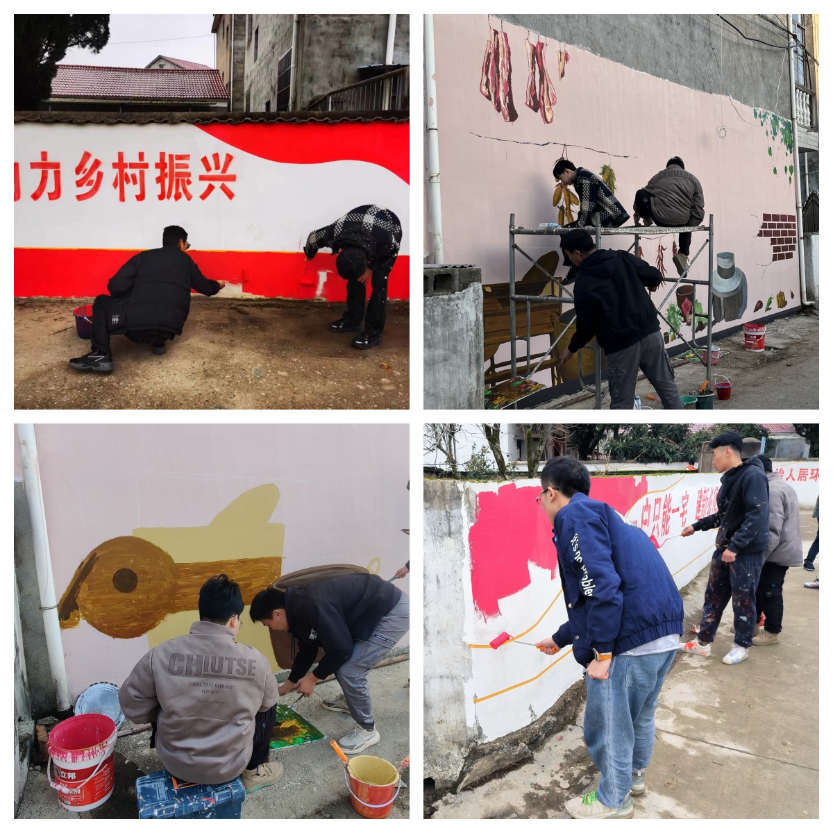在充分详细了解湖里分场的创建文化以后,同学们充分发挥美术特长,围绕党的二十大精神、社会主义核心价值观、环境保护、农耕文化、共建美好乡村等主题,齐心协力、分工合作,对乡村的墙体进行绘画装饰,生动呈现湖里分场的村容村貌、人文特色,让美育之花扎根泥土,绽放芬芳,使村民们在潜移默化中接受优秀文化熏陶,感受精神文明建设新风尚。