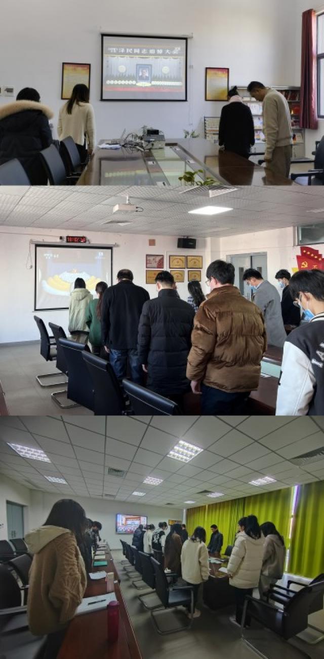 上午10时,行政楼318会议室,全体成员肃然起立,默哀行礼,沉痛送别江泽民同志。缅怀江泽民同志的卓越功勋,感悟江泽民同志的精神风范。