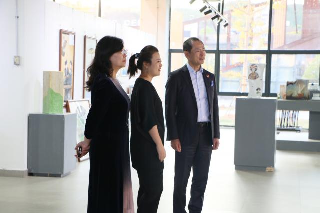 在陶瓷美术与设计艺术学院实训基地,来访嘉宾不仅观摩了学生的艺术作品展,还现场探索和体验了瓷上书法,汪开潮与赤松秀一分别在陶瓷盘上书写“和”字并署名盖章,叶观荣书记表示,中日之间的友好关系,用一个“和”字最能体现。双方表示将以此次交流为契机,努力促成beat365官网与日本高校间的文化艺术交流与合作。