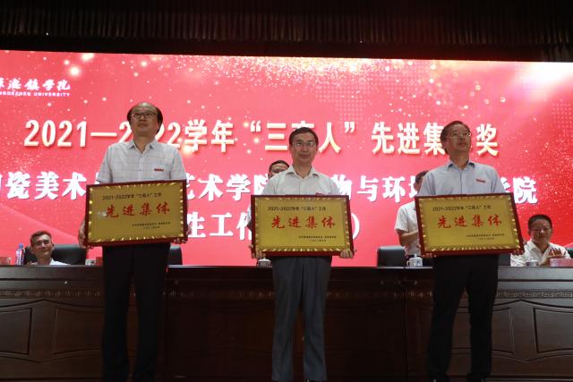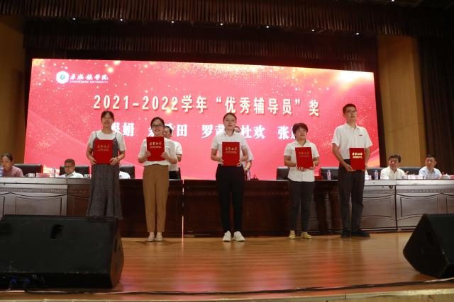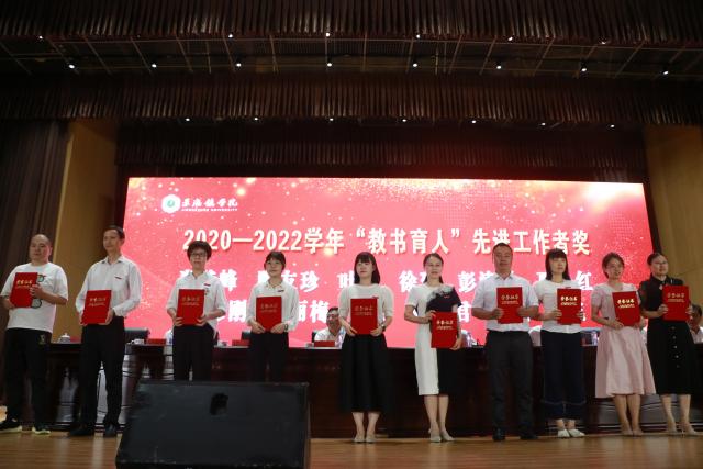 郑昕芾宣读《关于表彰获得省级以上荣誉教师的决定》《关于表彰2021—2022学年“三育人”先进集体和先进工作者的决定》《关于表彰2021年度优秀辅导员的决定》。