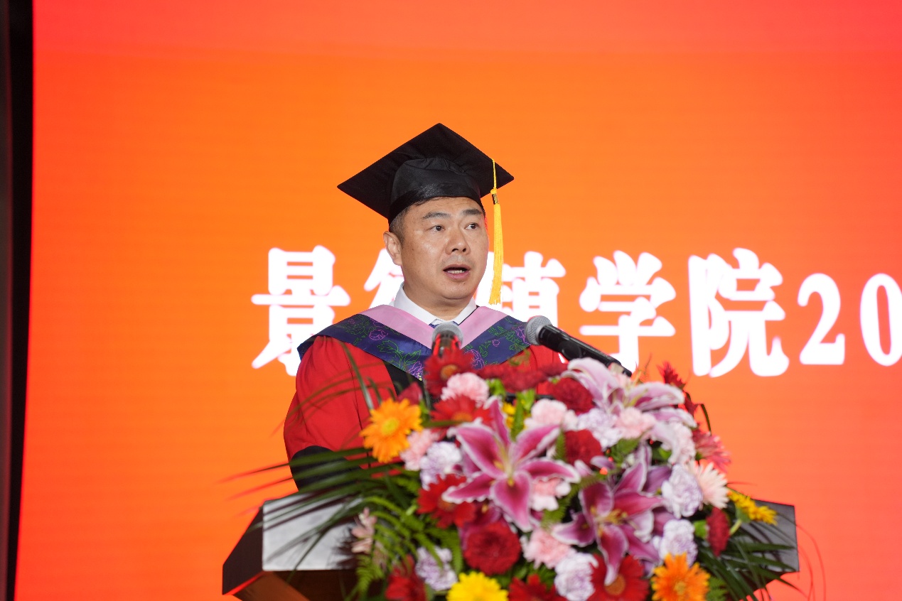 党委副书记、校长熊震宇代表学校向圆满完成学业的2025届毕业生们致以最热烈的祝贺!为即将奔赴星辰大海的学子,寄予最真挚的期许与祝福!随后熊震宇以“秉持校训精神,做攀登者、奉献者、先行者”为题,为全体毕业生讲授了一堂“毕业思政课”,带领同学们回顾了全校师生与国家发展同频共振、见证强国伟业的难忘历程,以及亲历校园环境优化与服务提升的温暖点滴。他高度肯定了毕业生在思想、学业、实践等多方面取得的丰硕成果。围绕校训“自强不息、泽土惠民”及“知行合一”的实践要求,殷切勉励毕业生坚持自强不息,做砥砺奋斗、敢破藩篱的攀登者;坚持泽土惠民,做赤诚报国、心有大我的奉献者;坚持知行合一,做埋头实干、勇立潮头的先行者,把青春播撒在民族复兴的征程上,跑好强国建设的接力棒。他表示,无论毕业生们未来奔赴何方,母校始终是大家精神的港湾,期待大家常回校园,共话成长、同绘新篇。