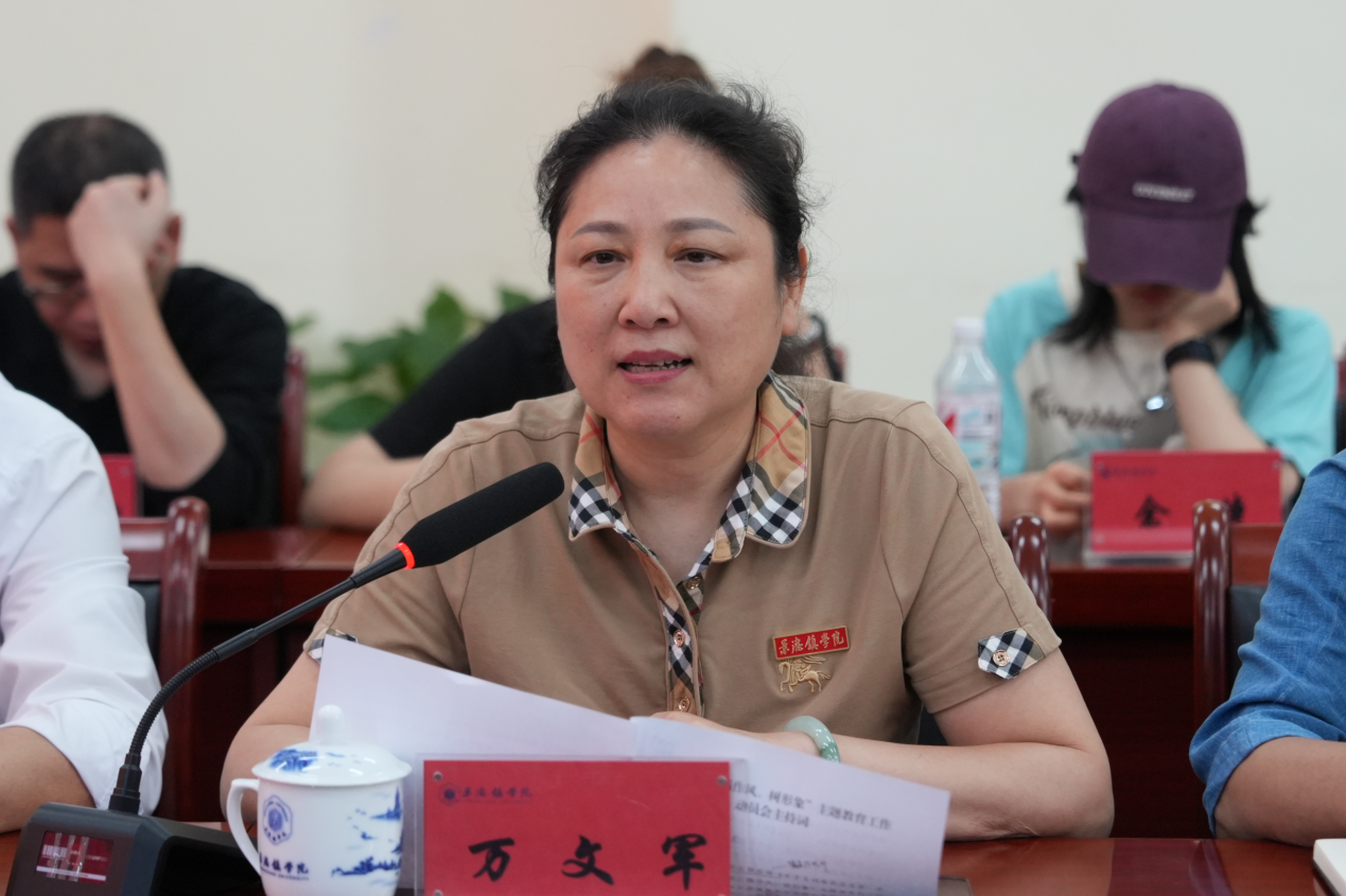 会上,万文军指出,中央八项规定是中国共产党以严明纪律整饬作风,推动党的自我革命的重大历史性举措,民主党派、无党派人士作为新时代中国特色社会主义参政党,必须始终与中国共产党同心同德,将深入贯彻中央八项规定精神作为坚定拥护“两个确立”、坚决做到“两个维护”的具体实践。她就落实主题教育工作提出三点要求:一是要深学细悟,夯实思想根基。二是要自查自纠,强化作风整改。三是要树牢作风形象,彰显担当作为,以此次主题教育为契机,将作风建设成果转化为服务学校中心工作的实际行动,为学校高质量发展凝聚合力。