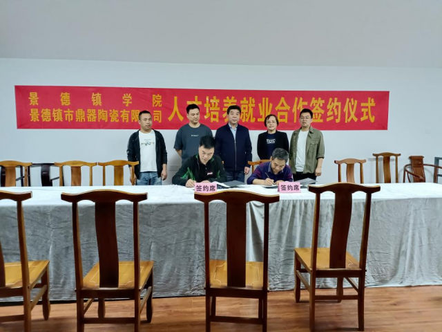 (本网讯:陈猛)为深入贯彻落实教育部及江西省教育厅“高校书记校长访企拓岗促就业专项行动”,推动高校就业工作落实落地,进一步深化校企合作促进产教融合,5月10日,校党委委员、副校长郑昕芾前往景德镇市鼎器陶瓷有限公司进行走访调研,并出席校企座谈会暨校企人才培养就业合作签约仪式。人文学院党总支书记戴强、院长杜慧春、副院长陈猛陪同。