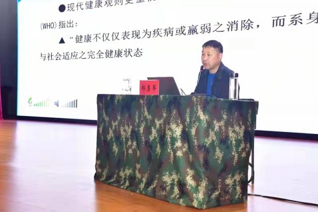 郑勇军围绕“军人心理健康的自我调适”主题,从“心理健康概念”入手,分析我国军人心理健康的现状、标准与影响因素等,通过生动的案例帮助官兵们了解自己的心理状态,学会用有效的理论与方法来进行自我调适。