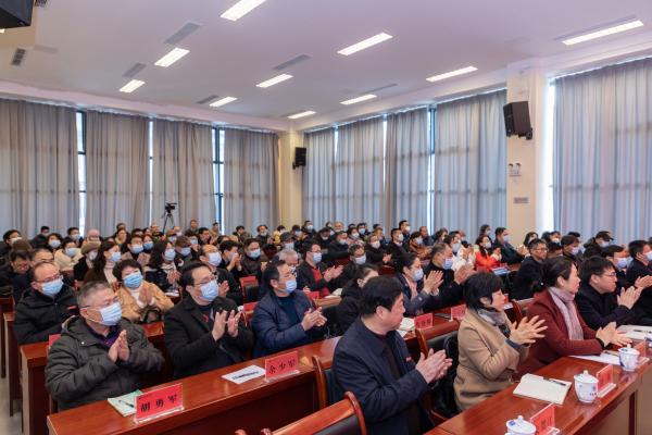 学校正处级领导干部和正高职称人员代表参加会议。
