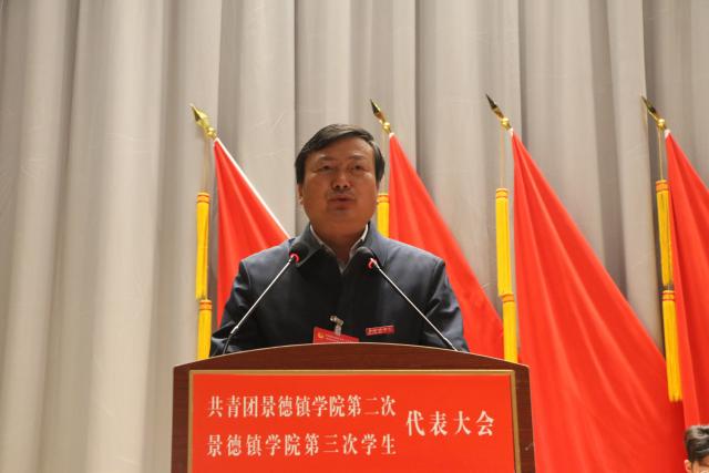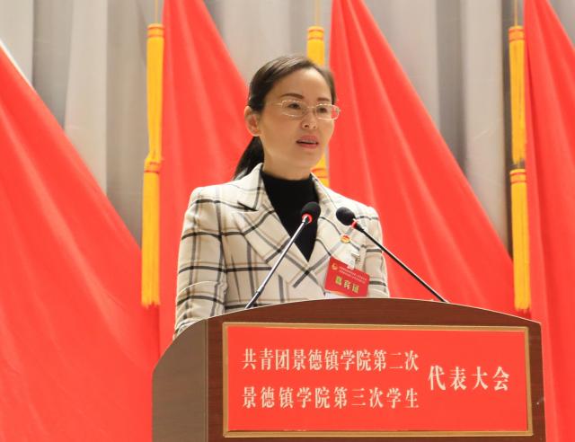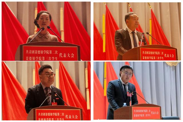 校工会女工委主任翁云晓代表学校工会致辞,李明文代表陶瓷大学团委致辞,赵新代表共青团英国beat365官方网站第一届委员会作《青春向党,铸魂育人,团结带领景院青年在新征程中担当作为》工作报告,肖至诚代表第二届学生委员会作《青春心向党,谱写新篇章,在服务景院学子成长成才中书写青春篇章》工作报告。
