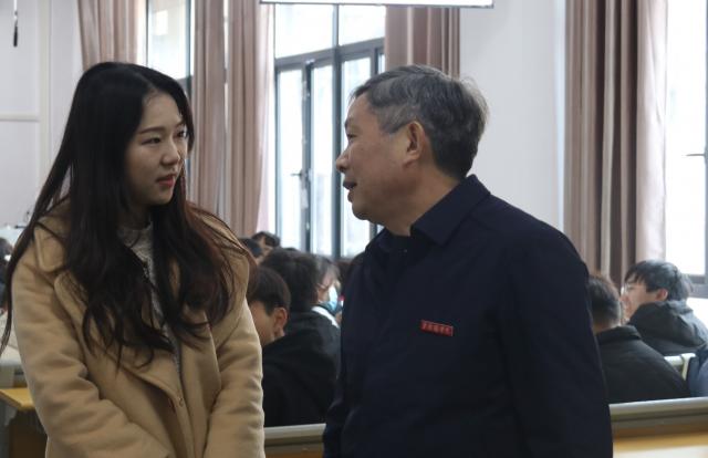 校党委委员、副校长吴丁、郑昕芾一同听思政课。校党委委员、宣传统战部长方文龙、教务处处长余金保、党政办负责人程立新及其他相关部门负责人陪同。