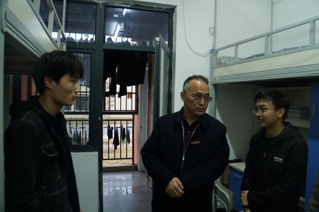 夕阳西下,陈雨前径直走向学生宿舍,查看同学们的住宿环境,关心同学们的课后生活。他亲切的和同学们交流,询问是否住得舒适、住的安全,了解学生未来规划,有无考研的想法等,场面十分融洽。