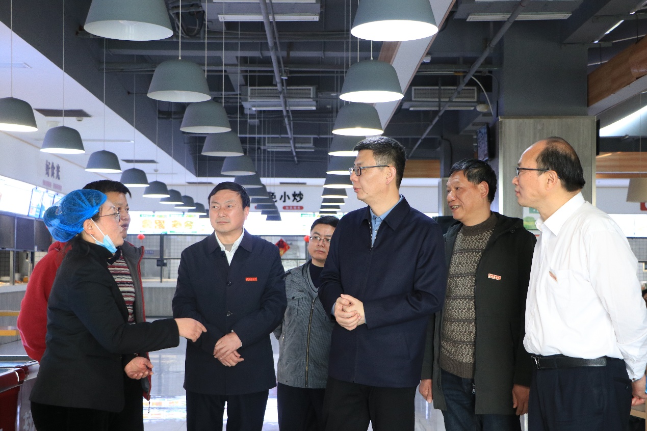 (本网讯:文|郭诗蕊/图|童炜轶、郭诗蕊)4月3日下午,景德镇市人民政府党组成员、副市长罗文军深入beat365官网就校园食堂食品安全管理工作进行督导调研。校党委副书记王丽心、副校长黄志坚,党委委员、宣传部部长赵雪政等相关部门人员陪同调研。