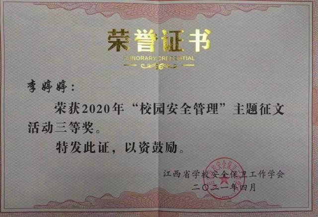 beat365官网教师李虹、李婷婷在江西省2020年“校园管理主题征文中荣获佳绩