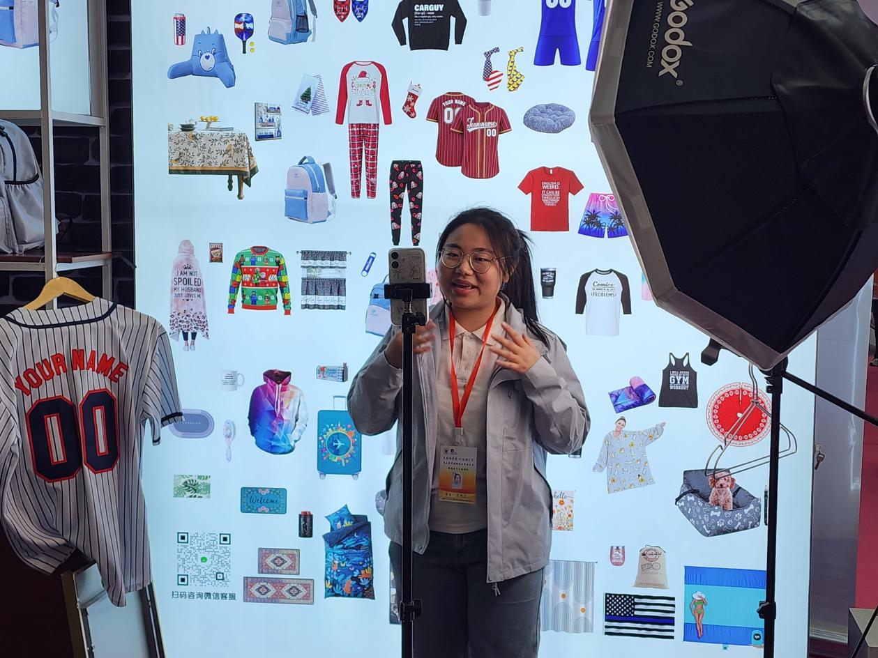 外国语学院跨境直播团队学生在会展现场进行跨境直播(二) 外国语学院供图